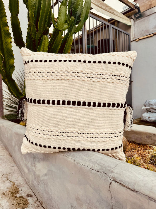 Capa de Almofada Bordada em Linho Tufada Boho 45x45 EST13