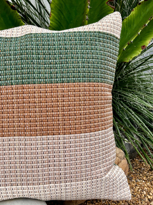 Capa de Almofada em Linha 100% Algodão Listrada Verde e Marrom 50x50