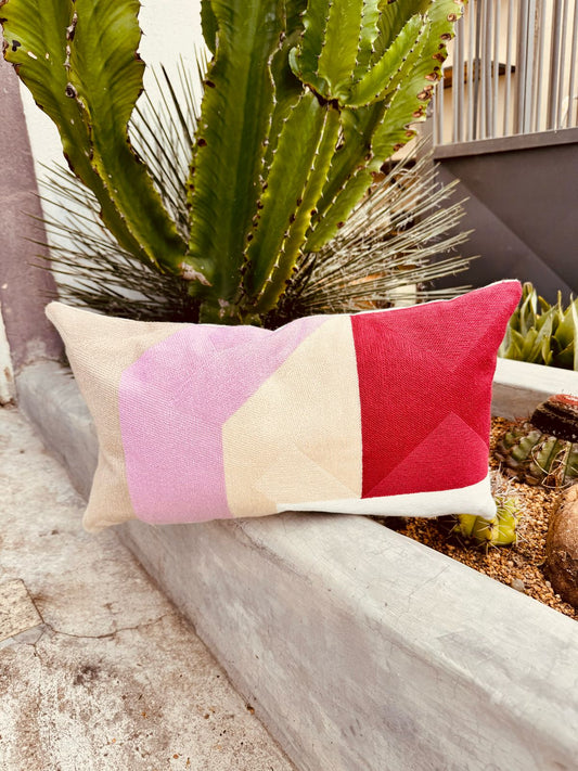 Capa de Almofada Baguete Bordada em Linho 30x50 EST04 Rosa e Vermelho