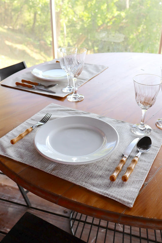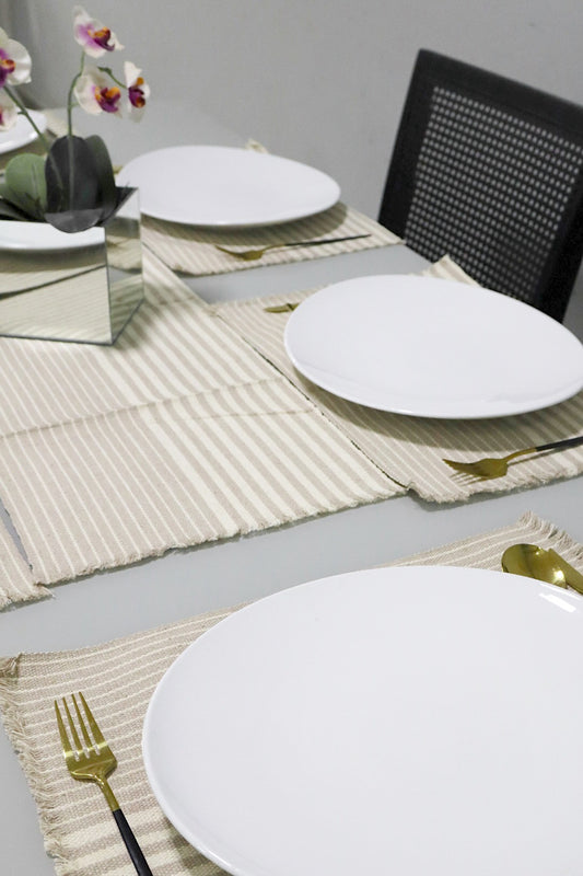 Jogo Americano Comum Marrom com Listra Cru 7 Peças