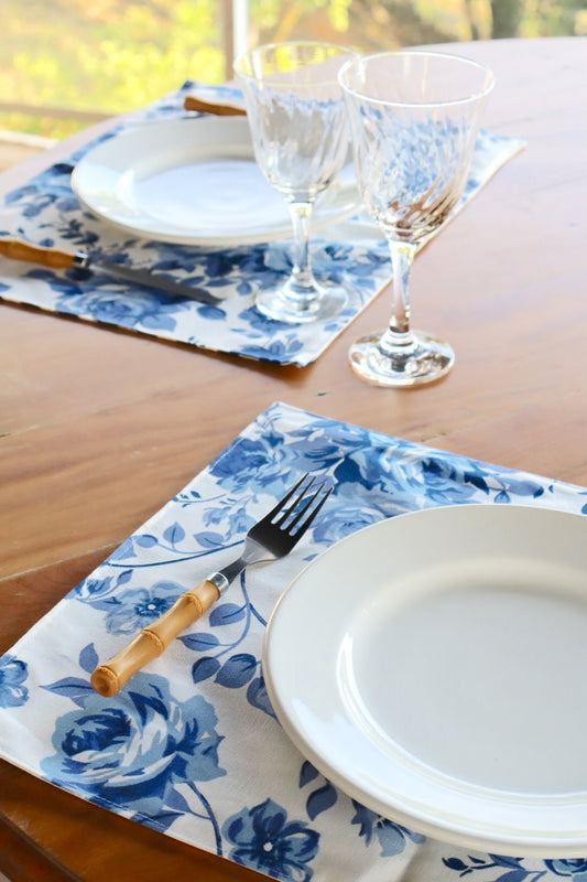 Lugar Americano Dupla Face Impermeável Floral Azul/ Listrado Azul