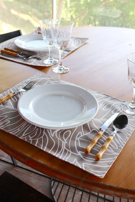Lugar Americano Dupla Face Impermeável Folhas Bege