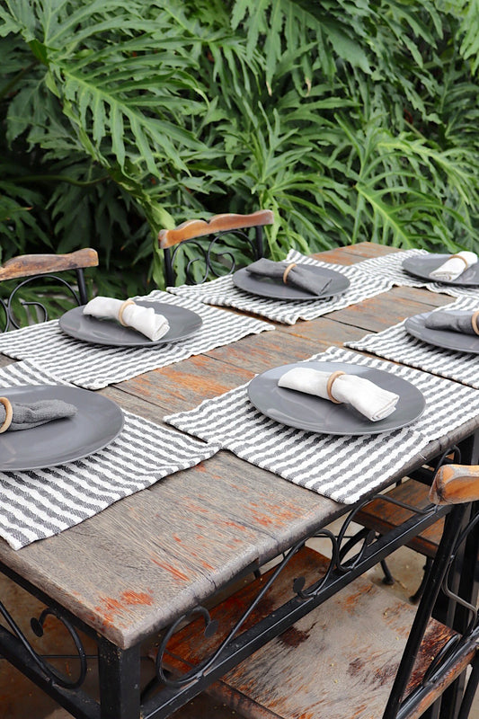 Kit De Jogo Americano, Guardanapo e Argola 6 lugares Cinza Grafite