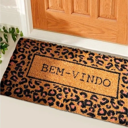 Tapete Bem Vindo Fibra de Coco Antiderrapante Bem Vindo Onça