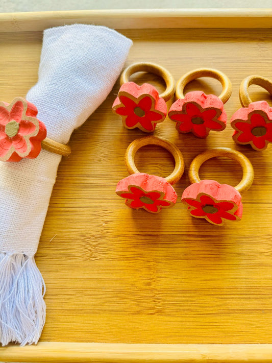 Kit Porta Guardanapo 6 Peças Flor De Madeira Pintada Vermelho