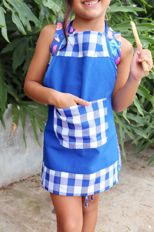 Avental Infantil com Touca Azul Xadrez