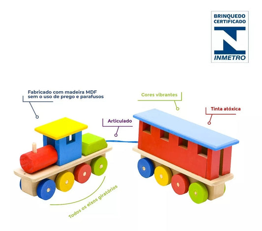 • Trem Trenzinho Vagão Brinquedo De Madeira Multicolorido