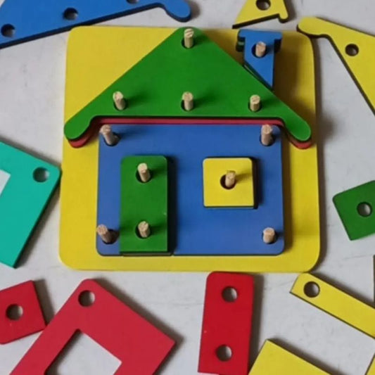 Casinha em Formas Geométricas de Encaixe Madeira Brinquedo Pedagógico