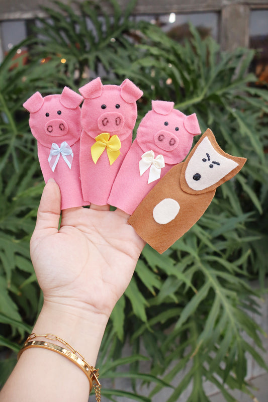 • Dedoche de Feltro para Contar História Três Porquinhos