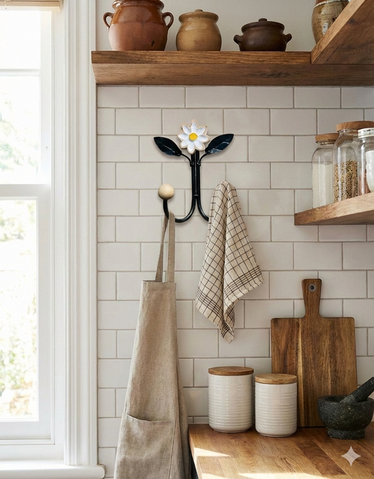 Cabide de Madeira com 4 Ganchos Flor Branca