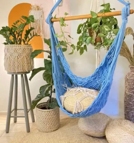 Rede Cadeira Balanço Teto Trançada - Azul