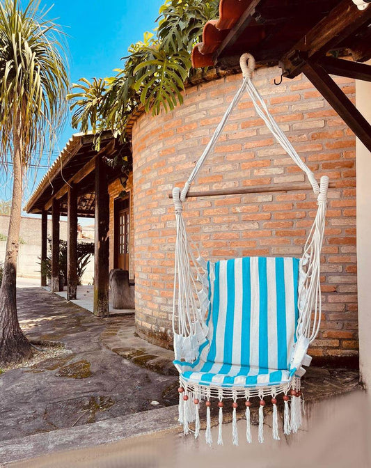 Cadeira De Balanço De Bolinha - Azul Claro com Listra Cru