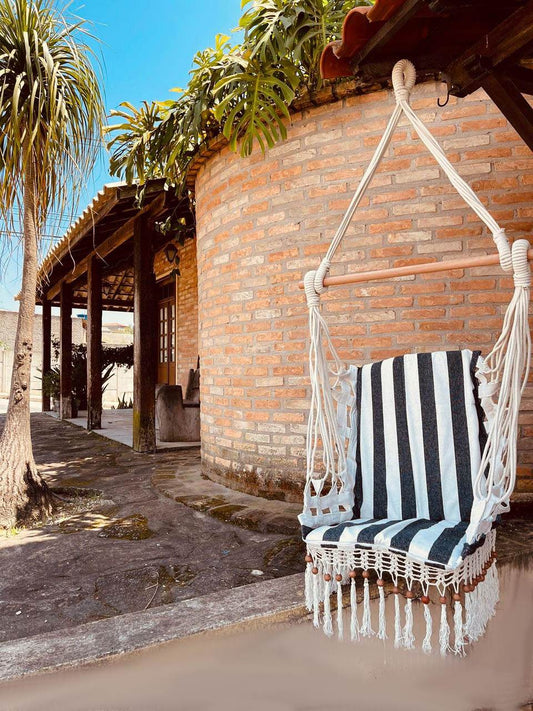 Cadeira De Balanço De Bolinha - Preta com Listra Cru