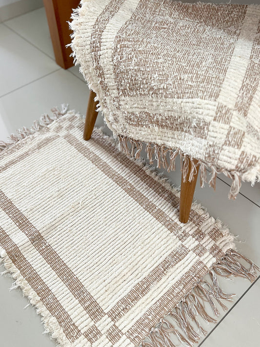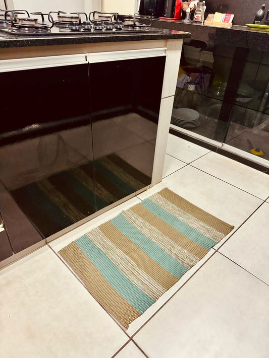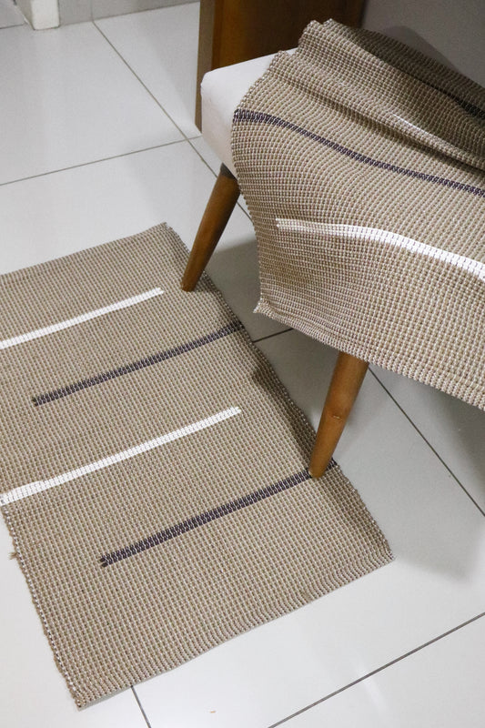 Tapete Algodão Felpudo Café com Leite Listrado 40x60