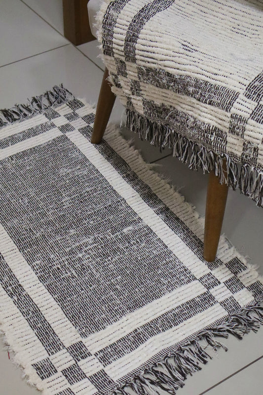 Tapete Algodão Felpudo Preto Listrado 40x60