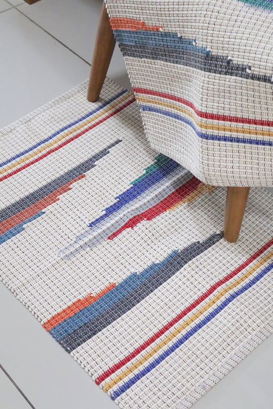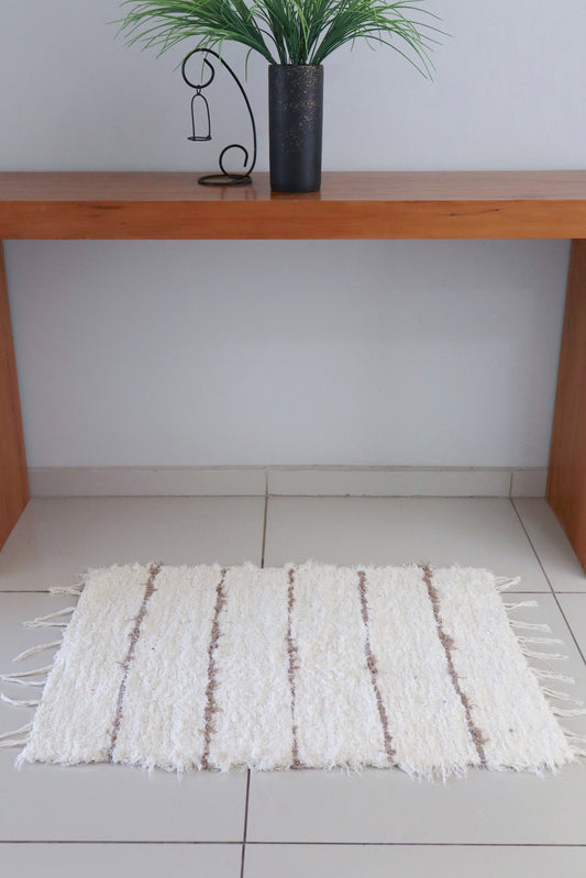 Tapete Algodão Felpudo Bege Listra Fina 50x80
