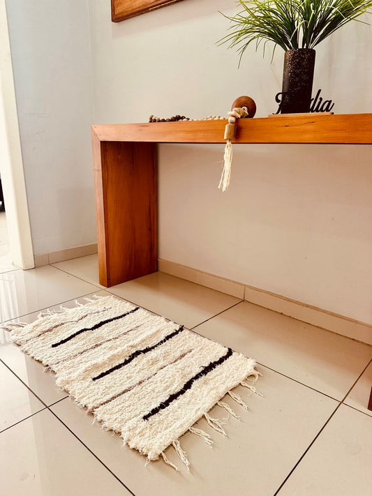 Tapete Algodão Felpudo Preto Listrado 50x80