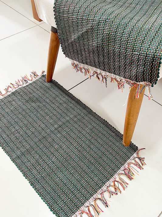 Par Tapete Malha Algodão Mini Liso Verde Escuro