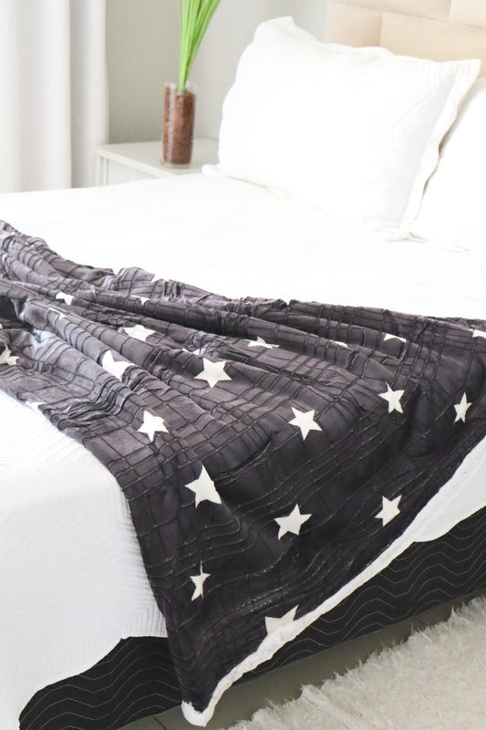 Manta Microfibra Sherpa Pelo Carneiro Estrelas Cinza