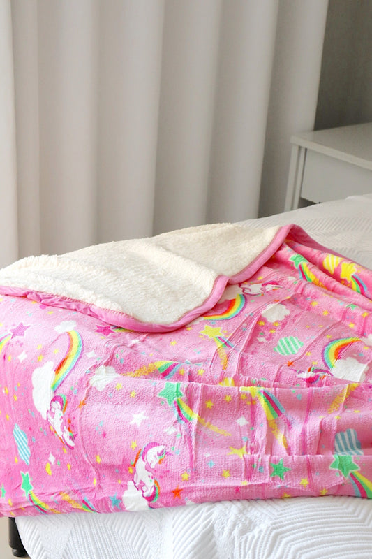 Manta Microfibra Sherpa Pelo Carneiro Unicórnio Rosa