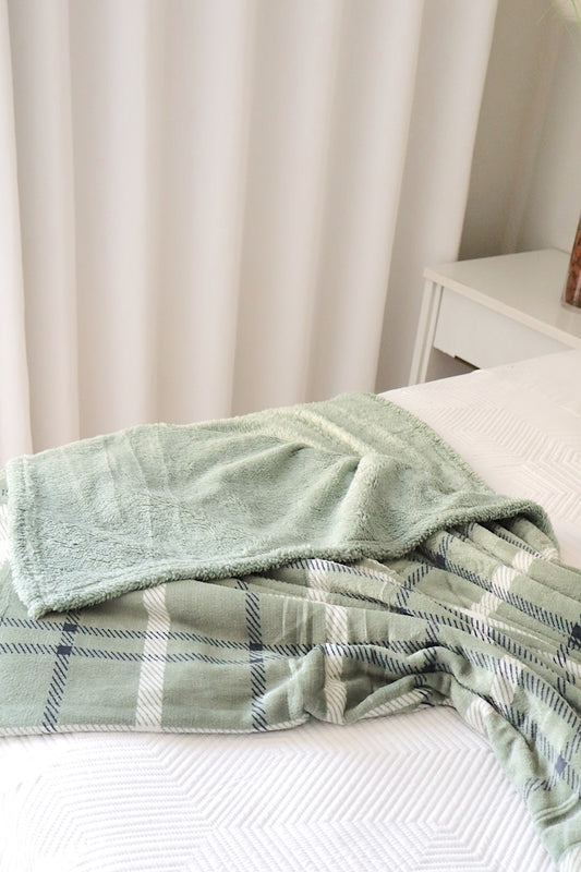 Manta Microfibra Sherpa Pelo Carneiro Xadrez Verde