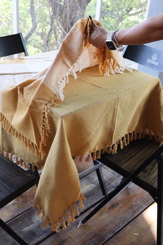 • Toalha de Mesa Cobre Lanche com Duas Peças: Lisa e Xadrez Mostarda