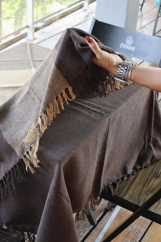 • Toalha de Mesa Cobre Lanche com Duas Peças: Lisa e Xadrez Marrom