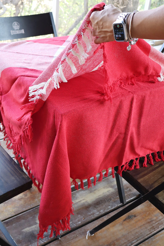 • Toalha de Mesa com Barra de Chita Vermelha com Composê 1,10x1,10m