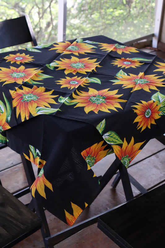 Toalha de Mesa com Barra de Chita Preta com Composê 1,10x1,10m