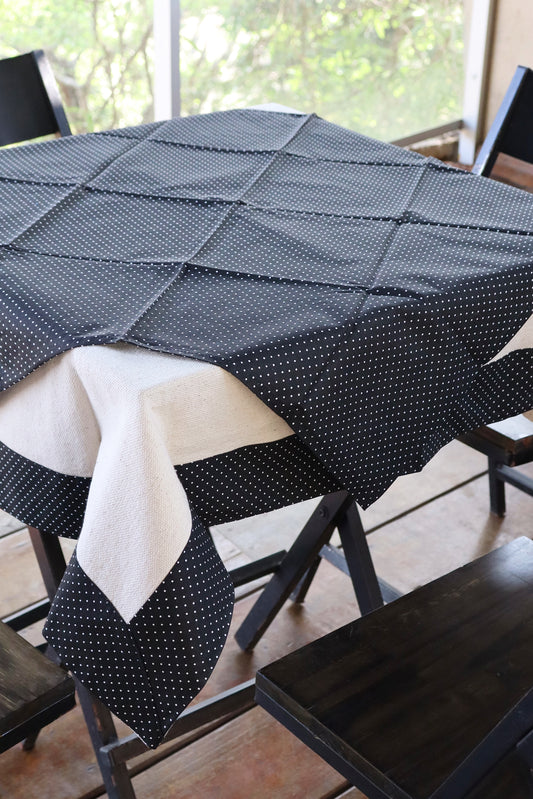 Toalha de Mesa com Barra de Tricoline Poá Preto com Composê 1,10x1,10m