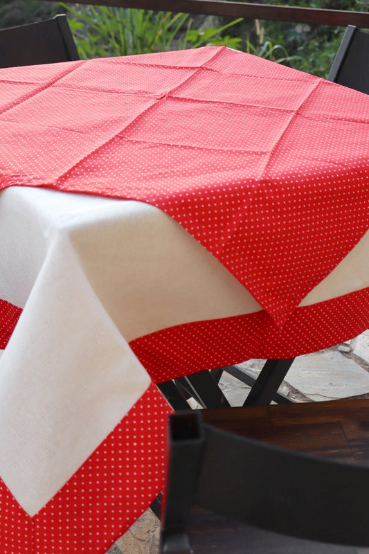 • Toalha de Mesa com Barra de Tricoline Poá Vermelho com Composê 1,10x1,10m