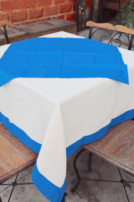 • Toalha de Mesa com Barra de Tricoline Poá Azul com Composê 1,10x1,10m