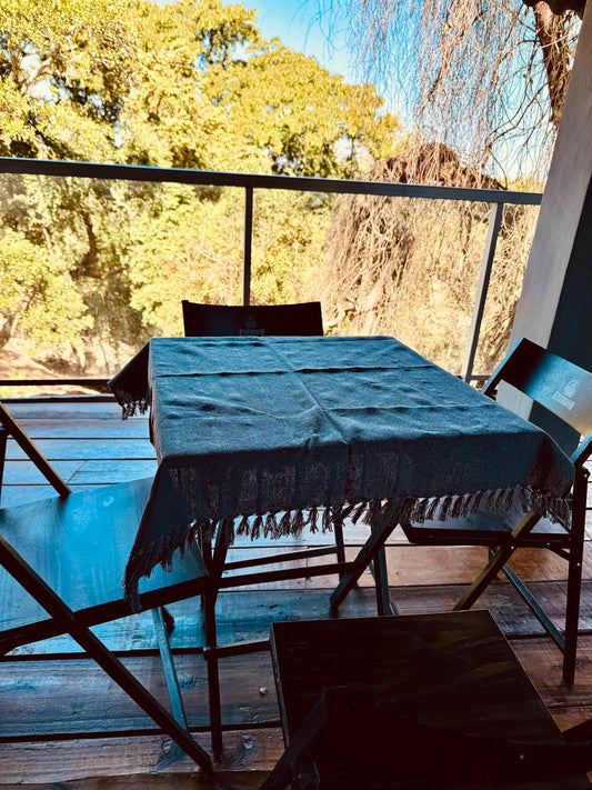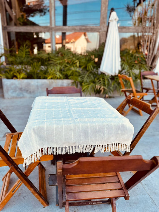 • Toalha de Mesa Quadrada Listrada Azul e Cinza 0,70x0,70m