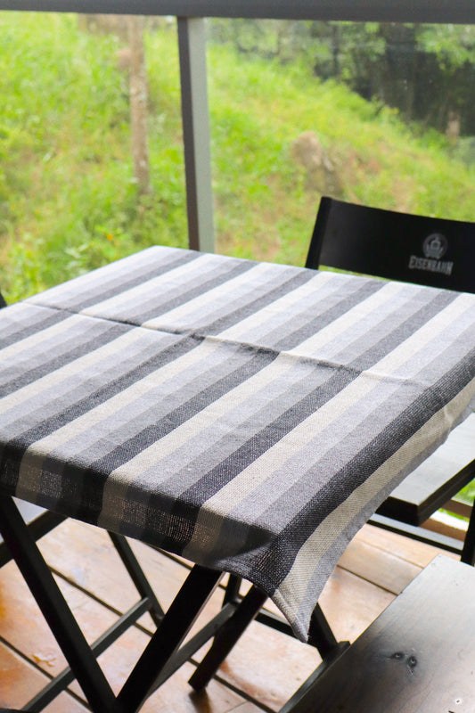 Toalha de Mesa Quadrada Listrada Preta e Cinza 0,70x0,70m