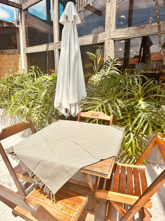 Toalha de Mesa Quadrada Listrada Nude 0,70x0,70m