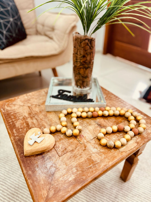 Colar / Terço de Mesa Decorativo Coração com Divino