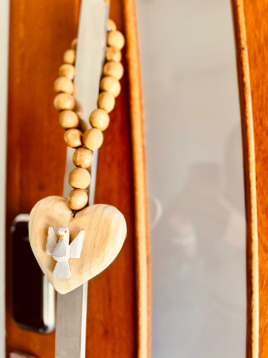 Enfeite de Porta / Mini Colar / Terço de Mesa Decorativo Coração com Divino