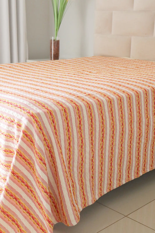 Colcha para Cama Casal 2,20x2,50m Artesanal Listrada Vermelha, Preta e Amarela