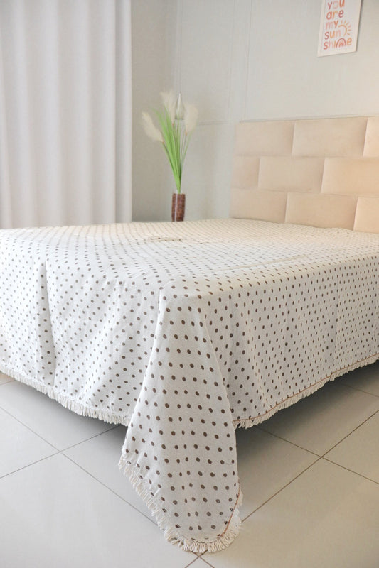 Colcha Casal Bolinhas Dupla Face Marrom 2,10x2,40m