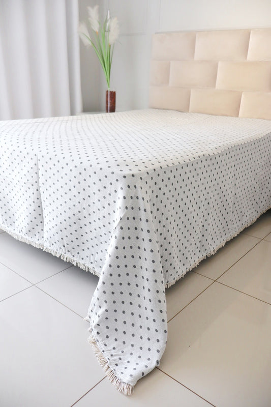 Colcha Casal Bolinhas Dupla Face Cinza 2,10x2,40m
