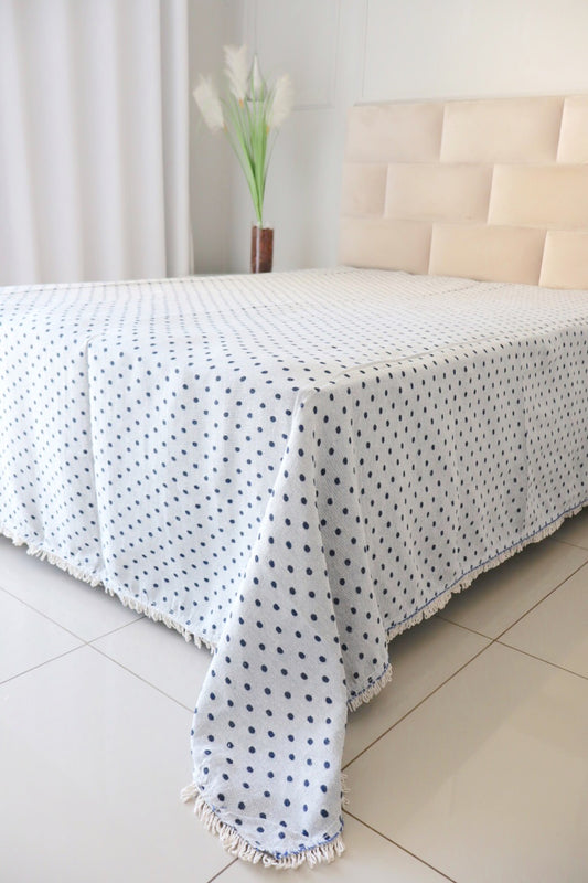 Colcha Casal Bolinhas Dupla Face Azul 2,10x2,40m