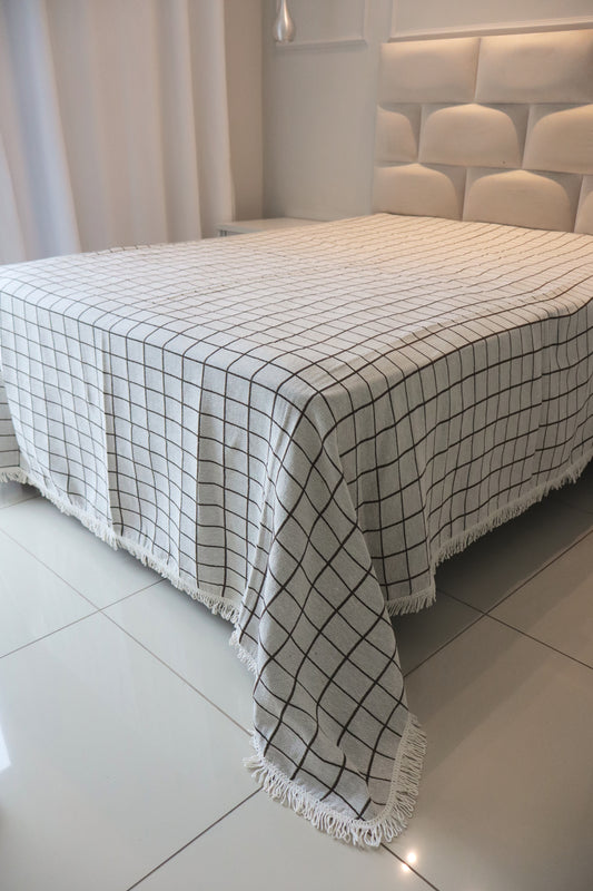 Colcha Casal Grid Dupla Face Preta 2,10x2,40m