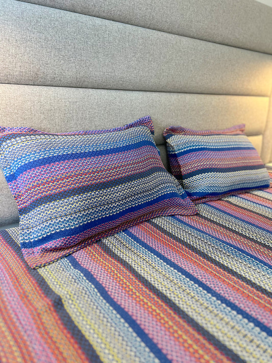 Kit Colcha Indiana + Porta Travesseiros Casal Azul