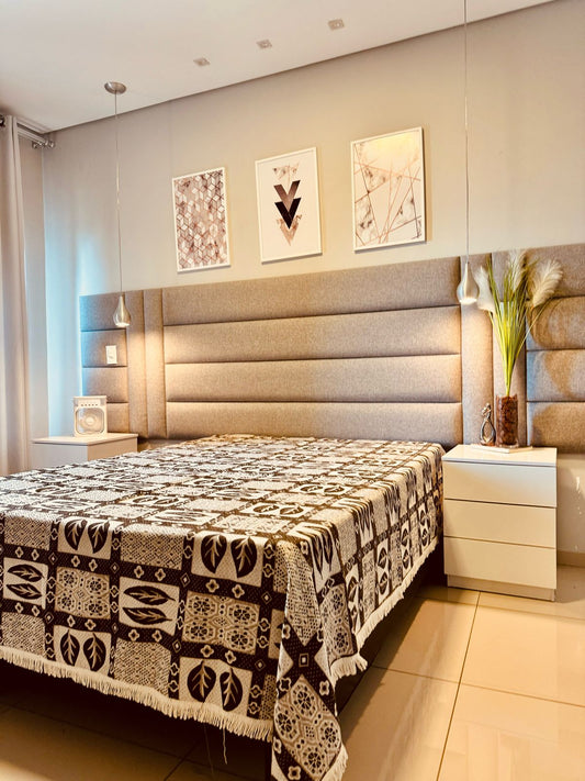 Colcha Casal Folhas Marrom 2,10x2,40m