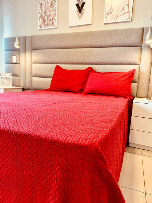 Colcha para Cama Casal 2,20x2,50m Artesanal Vermelha
