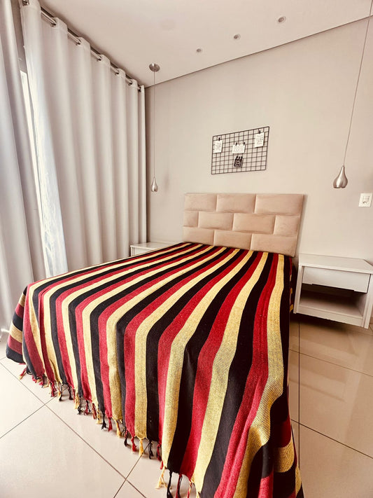 Colcha para Cama Queen 2,40x2,60m Artesanal Listrada Vermelha, Preta e Amarela