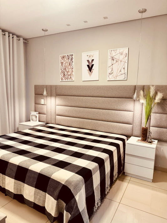 Colcha para Cama Queen 2,40x2,60m Artesanal Xadrez Preta e off white