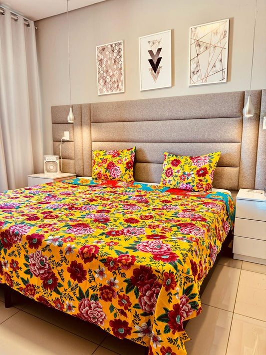 Kit Colcha e Porta Travesseiros Queen Chita Dupla Face
