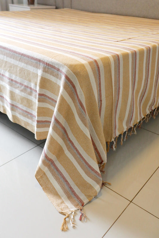 Colcha para Cama Queen 2,40x2,60m Artesanal Listrada Mostarda