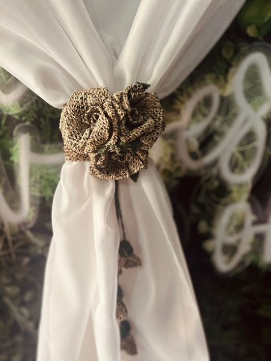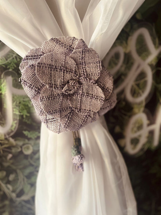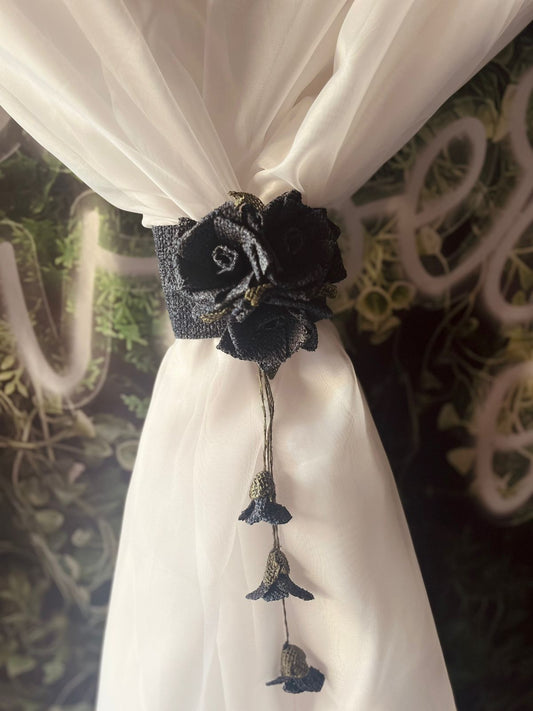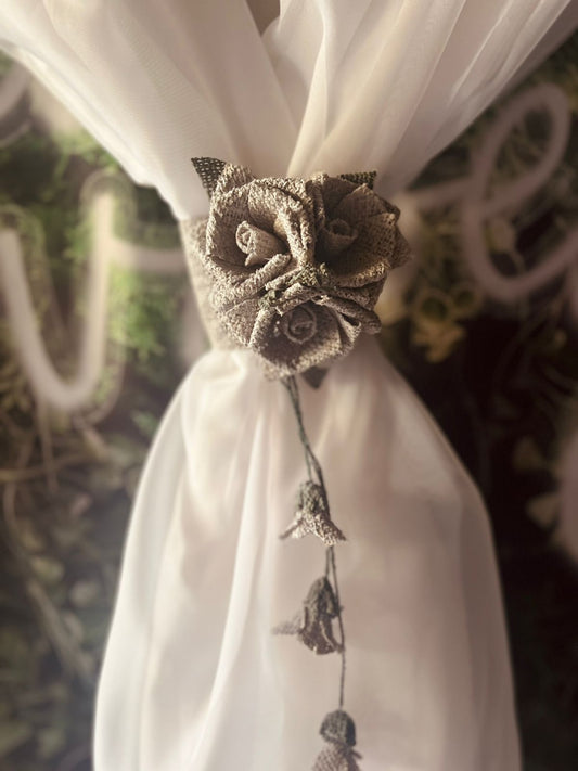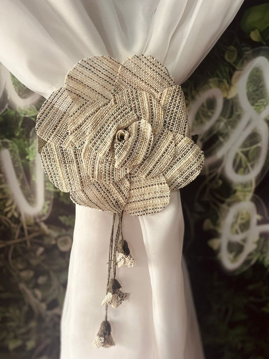 Prendedor Cortina 1 Flor - Par Cru com Preto